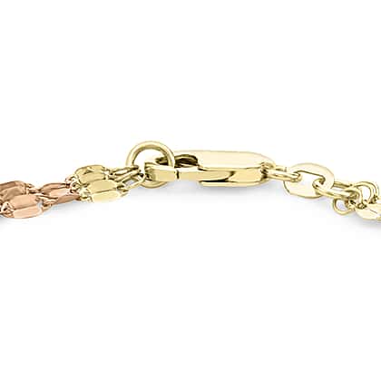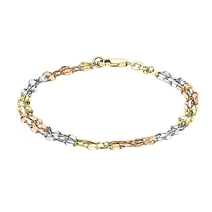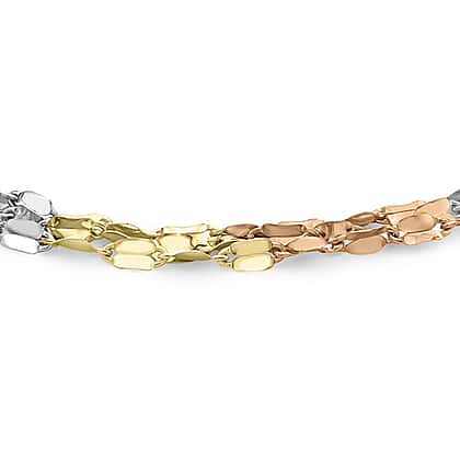 9K Tri Colour Gold 2MM 3 Strand Forzatina Chain Bracelet .5 Inch, 2.4 grams
