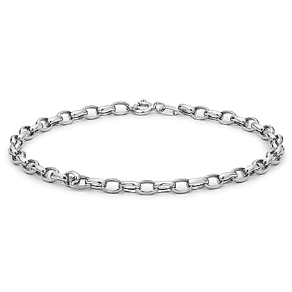 9K White Gold Hollow Oval Belcher Anklet 10 Inch