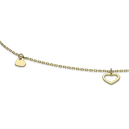 9K Yellow Gold 5mm x 4mm Open and Closed Heart Adjustable Anklet 9 Inch to 10 Inch