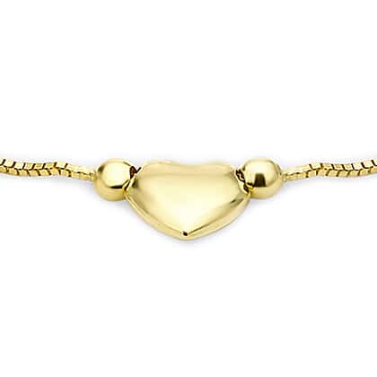 9K Yellow Gold 3 Heart Charm Box Chain Anklet 10.5 Inch