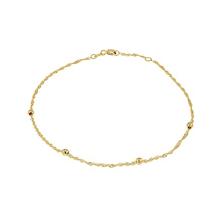 9K Yellow Gold 3mm Balls and Twist Curb Chain Adjustable Anklet 8.75 Inch to 9.5 Inch