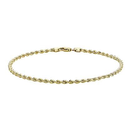 9K Yellow Gold Hollow Diamond Cut Rope Anklet 10 Inch