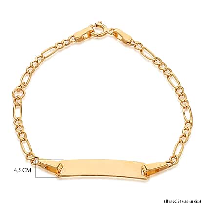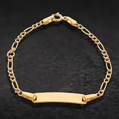 Looking for a precious gift for a child? This 9K yellow gold Hollow Figaro ID bracelet is your best bet. It comes with an elegant 17mm x 4.5mm ID plate that can be engraved with a name or initials, and a classic Figaro chain design. This adjustable bracelet can be worn from 10.5 to 13 inches, making it suitable for growing children.