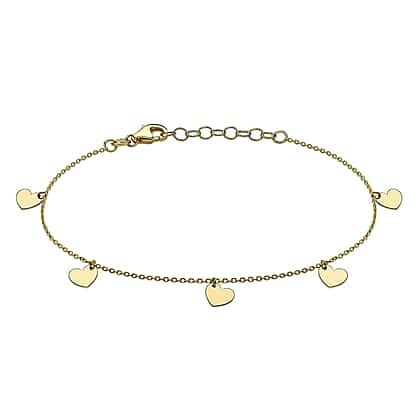9K Yellow Gold 6mm x 6mm 5 Heart Adjustable Bracelet 7 Inch to 8 Inch