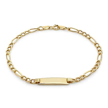 Step inside a world of luxury with this premium yellow gold bracelet featuring unique Figaro links, giving it a woven rope effect. The lobster clasp helps in keeping the Size 7 bracelet secure on the wrist. This bracelet with a sleek bar plate gives a classy touch to the overall ornament. It is designed to be worn on all kinds of occasions, lending an adaptable option to your wardrobe.
