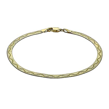 9K Yellow Gold 3.5mm Diamond Cut Wave Herringbone Bracelet 7 Inch