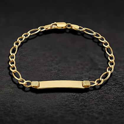 This stunning 9K yellow gold flat Figaro ID bracelet is a timeless piece of jewellery that will add a touch of sophistication to any outfit. A classic Figaro chain design, this bracelet is a perfect balance of style and substance. A must have bracelet for anyone who loves minimalistic jewellery.