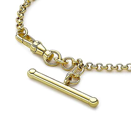 9K Yellow Gold 25.5mm x 3mm T Bar Hollow Belcher Chain Albert Clasp Bracelet 7.5 Inch