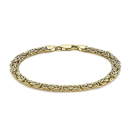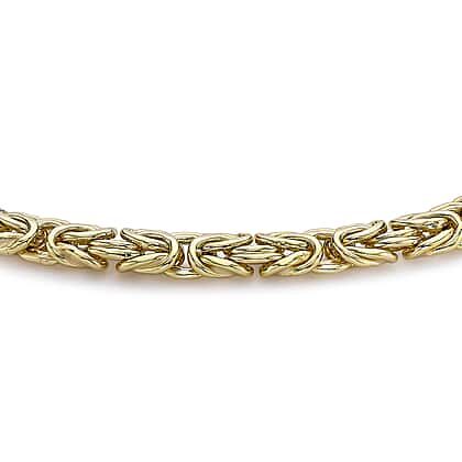Adorn yourself with this stunning yellow gold byzantine chain bracelet, designed to make a bold statement and bring a touch of glamour to any outfit. Crafted from the highest quality 9K gold, the intricate byzantine links of the chain are sure to turn heads and make an impression. Perfect for any special occasion, this exquisite yellow gold bracelet will be a fantastic addition to your jewellery collection.