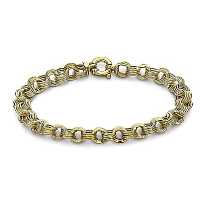Nothing can beat the shine and allure of this unique quadruple-ring link bracelet. This bracelet is crafted from 9K yellow gold with textured and polished detailing to give it a luxe appeal. It features round links connected in a circular pattern to give it a unique designer touch. Style with on your special occasion for a more dressed-up look.