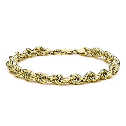 9K Yellow Gold Hollow Rope Chain Bracelet 8 Inch