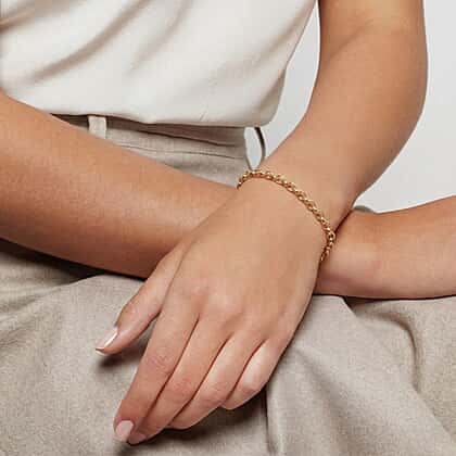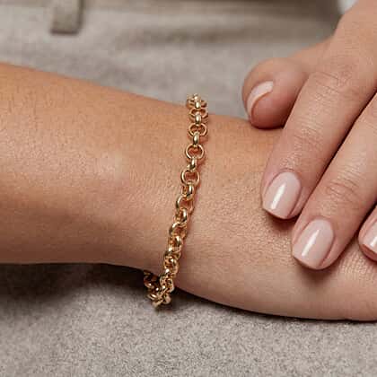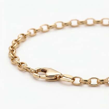 A Rollo chain, also known as an oval belcher chain, is a type of trace chain composed of D-shaped links that are rather broad and homogeneous in size and shape. Its versatility and widespread use make it one of the most famous jewellery chains. The one-click mechanism of the lobster clasp makes wearing this bracelet simple and easy. The 7.5-inch bracelet is ideal for those who plan on wearing it frequently. 9K yellow gold has established itself as one of the hardest metals available due to its composition of 9 gold parts from 24 parts. However, this bracelet is ideal for everyday wear due to its 1.100 gramme gold weight.