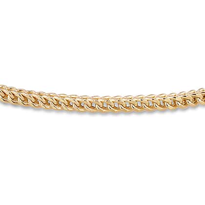 Add this bold and stylish franco link bracelet to your collection. This bracelet is made from 9K yellow gold and features a design inspired by the curb pattern found on pavements and walls. It has V-shaped linked chains to give them a strong girth and durability. The chain is secured using a lobster clasp fastening and has fine polish to give it a luxurious appeal.