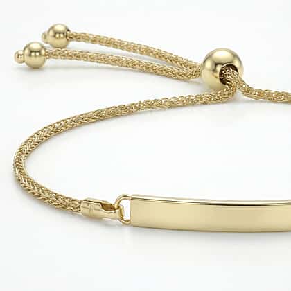 9K Yellow Gold 3mm X 34.5mm Spiga Chain Adjustable Slider Id Bracelet 9.5 Inch