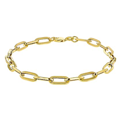 This exquisite paperclip chain bracelet features a sleek and modern design with links, making it a standout accessory for any occasion. Crafted in high-quality 9K yellow gold, this bracelet offers durability and a yellow tone shine. The paperclip chain design adds an elegant touch, perfect for stacking or wearing alone. The hypoallergenic nature of the metal offers comfort and safety to sensitive skin. Finished with a secure lobster clasp, this piece provides a secure fit and comfortable wear. With its versatile style, this bracelet can easily complement both casual and formal looks, making it a must-have addition to any jewellery collection.
