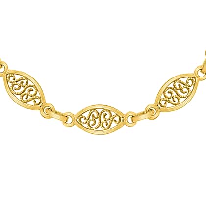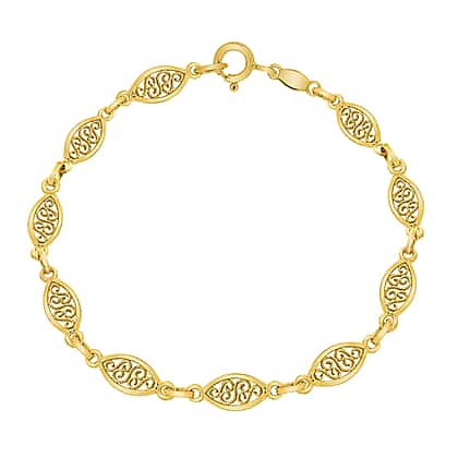 9K Yellow Gold 5mm Filigree Oval Bracelet 7 Inch