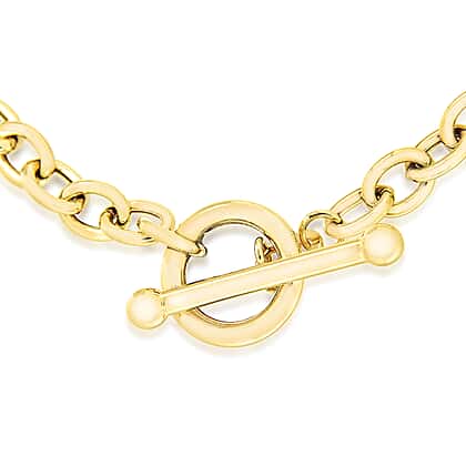 9K Yellow Gold 6mm Oval Link T Bar Belcher Bracelet 8 Inch