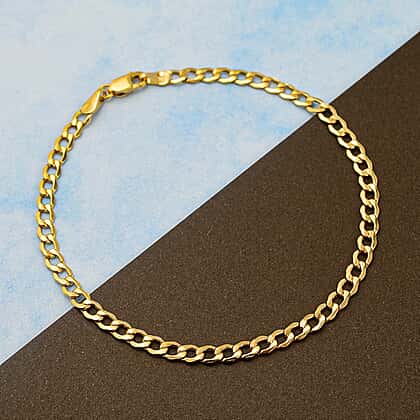 9K Yellow Gold Bevelled Flat Curb Bracelet (Size - 7.5)