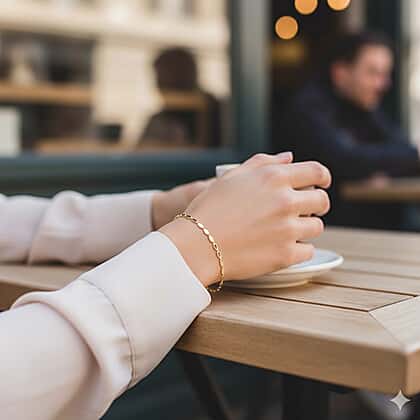 This bracelet features a series of soft, domed oval links that sit smoothly against the wrist, offering a gentle shimmer with every movement. Crafted in 9K yellow gold, offering enduring shine and durability. The hypoallergenic nature of the metal makes the piece safe and secure for sensitive skin. The design is captivating and luxurious without being loud, making it an ideal everyday gold piece that feels special even in its simplicity. Light in feel yet substantial in presence, it fastens securely with a traditional box clasp. An enduring wardrobe staple in fine gold, suited to lifelong wear and treasured gifting.