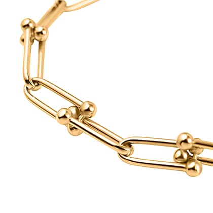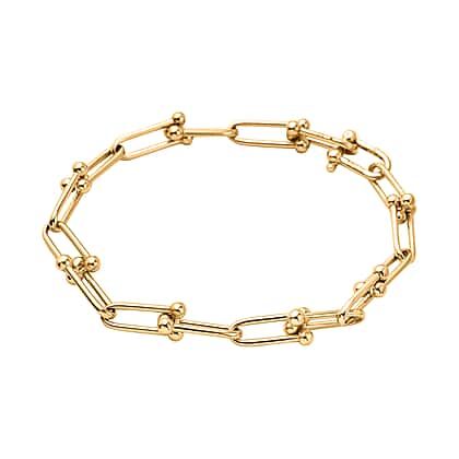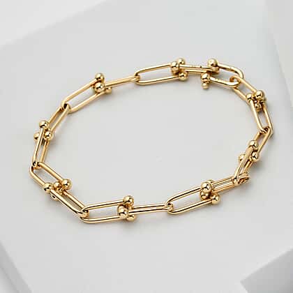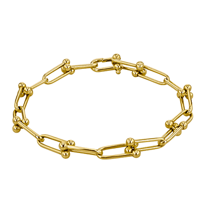Strong yet stylish, the Industrial U-Link bracelet is designed for women who love bold jewellery with a refined finish. Its statement-making U-link design, accented with rounded bead details, creates a modern industrial aesthetic softened by the warmth of yellow gold. The secure lobster clasp ensures a comfortable fit, while the polished surface reflects light beautifully. Crafted in hypoallergenic and tarnish-resistant gold, this 8-inch bracelet is perfect for everyday wear as well as evening styling. A versatile piece that symbolises strength and individuality, it makes a thoughtful gift or a distinctive addition to any jewellery collection.