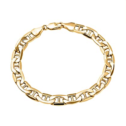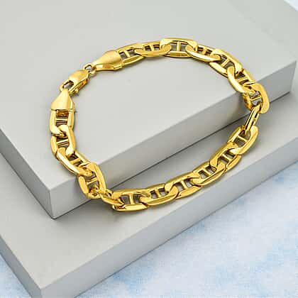 The warm, inviting gleam of yellow gold wraps around your skin when you sport this Rambo bracelet on your wrist. The quiet feeling of basking in the sun's embrace gets only better with the simplistic design of the mariner links that stand out on their own irrespective of whatever outfit you are wearing. This bracelet possesses the power to infuse any occasion with an undeniable sense of vitality and positivity.
