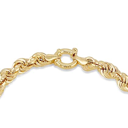 Looking for a yellow gold rope link bracelet that you can wear in any season without the fear of being judged by your friends and peers? This fancy rope link bracelet is tailor-made for an all-season look. The bold hollow links placed in a close-knit overlapping sequence lend the appearance of a golden rope knotted in place with a spring-ring clasp. 9K yellow gold leaves it clothed in a festive glow, while the trendy links ensure you can wear it with casual and party wear.