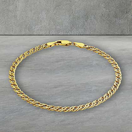 9K Yellow Gold High Finish Double Curb Chain Bracelet 7 Inch, 3.2 grams