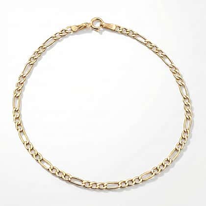 9K Yellow Gold High Finish Bracelet in Hollow Figaro Pattern Size 7.5 Inch