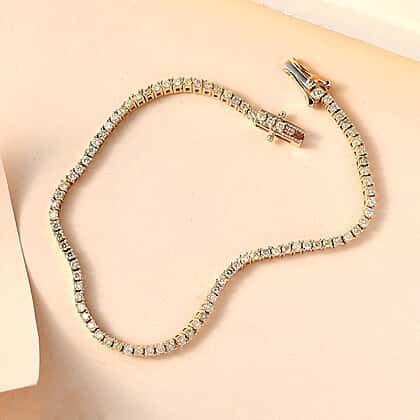 - The diamond rounds are set in a tennis bracelet exhibiting bright sparkle and shine