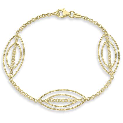 9K Yellow Gold Triple Double Diamond Cut Elliptic Link Bracelet 7.5 Inch