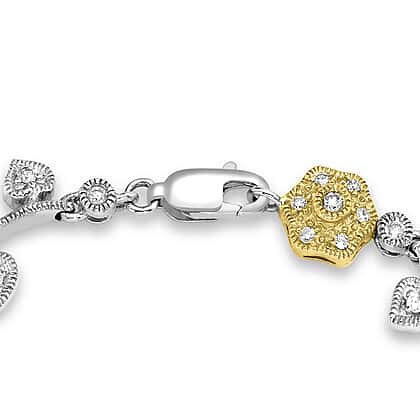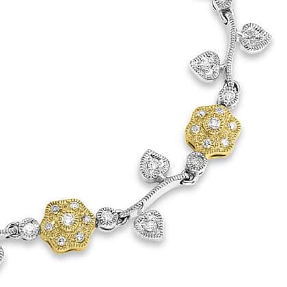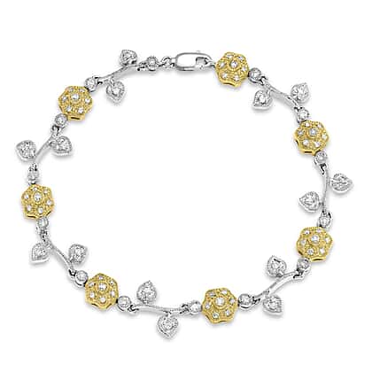 9K Two Colour Gold 1 Ct Diamond Flower and Leaf Bracelet 7.85 Inch