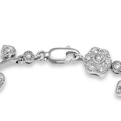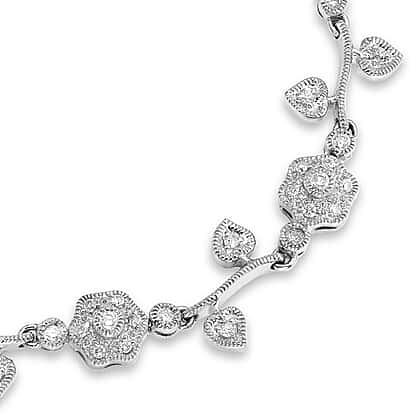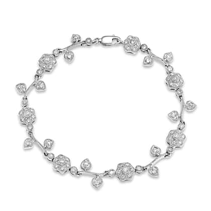 9K White Gold 1 Ct Diamond Flower and Leaf Bracelet 7.85 Inch