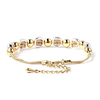 Adjustable Beads Bracelet (Size 7-8.5) in Silver and Gold Tone