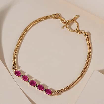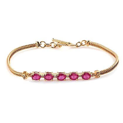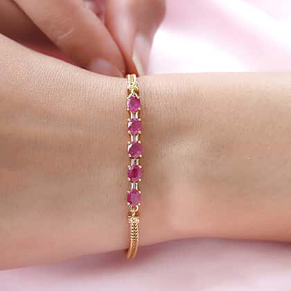 2.57 Ct. Fissure Filled Ruby and Diamond Bracelet Size 7.5 in Gold Plated Sterling Silver