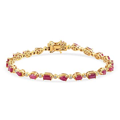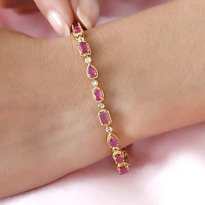 African Ruby (FF) and Natural Cambodian Zircon Bracelet Size 8 Inch in 14K Gold Plated Sterling Silver 8.38 Ct, Silver Wt. 12.28 Gms