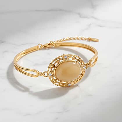 Amber & Cubic Zirconia Bracelet (Size - 7.5 with Ext) Sterling Silver 10.08 Ct, Silver Wt. 9.00 Gms.