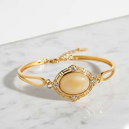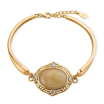 Amber & Cubic Zirconia Bracelet (Size - 7.5 with Ext) Sterling Silver 10.08 Ct, Silver Wt. 9.00 Gms.