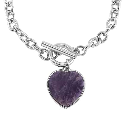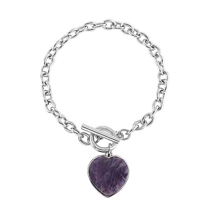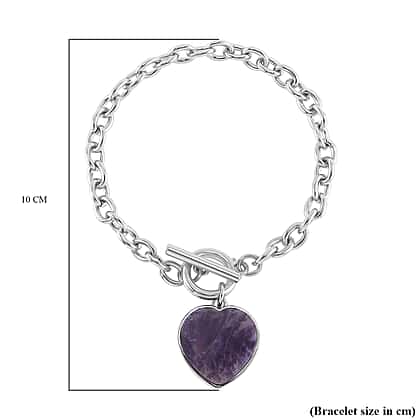 Amethyst Flat Heart Charm Toggle Lock Bracelet (Size - 7.5)