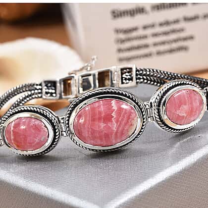 • Bracelet is bejewelled with three sparkling Argentinian Rhodochrosite