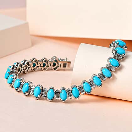 - Bracelet is studded with 28 Sleeping Beauty Turquoise ovals (6x4mm).