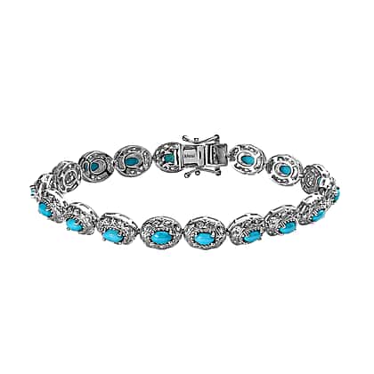 Arizona Sleeping Beauty Turquoise Tennis Bracelet (Size - 7.5) in Platinum Overlay Sterling Silver 3.95 Ct, Silver Wt. 14.01 Gms