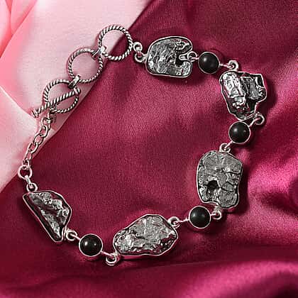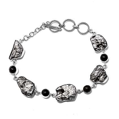Hand Crafted 91.8 Ct. Meteorite and Shungite Bracelet in Sterling Silver