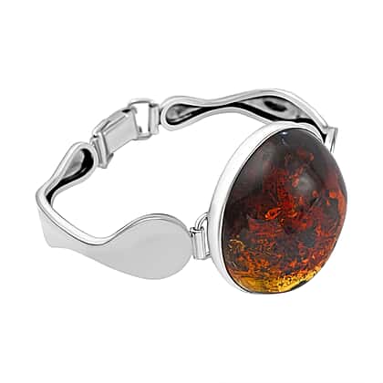 Baltic Amber Bangle (Size 7.5) in Sterling Silver, Silver Wt 24.00 Gms