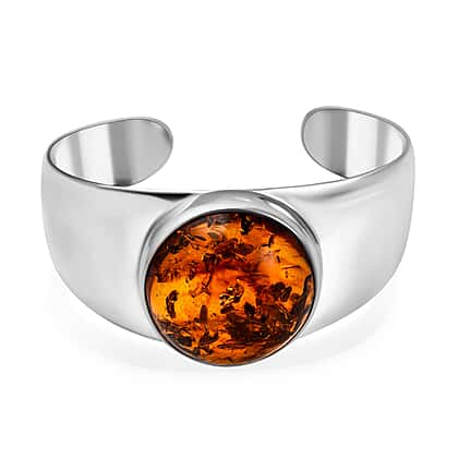 - GEMSTONE DETAILS: A round cabochon cut Baltic Amber worth 32.50 carats has been put in a bezel setting on this bracelet's shank, which is complemented by straight shank