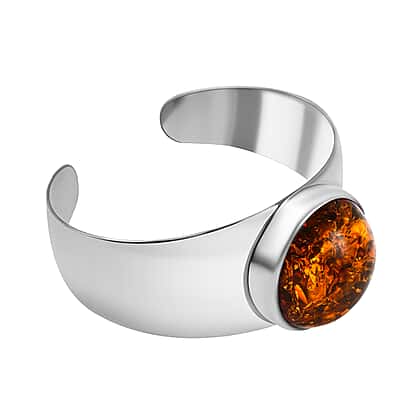 Baltic Amber Cuff Bangle (Size - 7.5) in Sterling Silver, Silver Wt 30.00 Gms