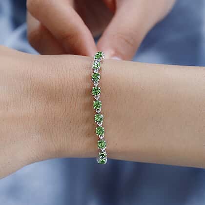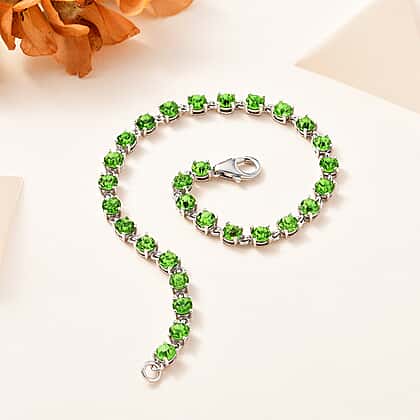 Biggest Close Out Deal - Finest Peridot Crystal Tennis Bracelet (Size - 7.5) in Platinum Overlay Sterling Silver