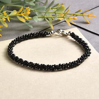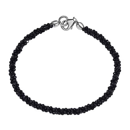 Black Spinel Bracelet (Size - 7.5) in Rhodium Overlay Sterling Silver 24.0 Ct.