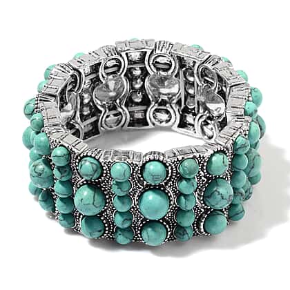 Blue Howlite Stretchable Bracelet (Size - 7-7.5) in Silver Tone 20.00 Ct.
