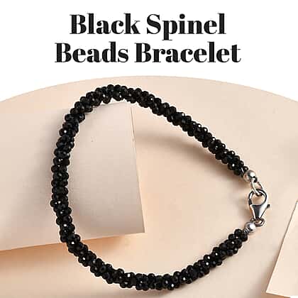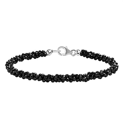 Black Spinel Beads Bracelet (Size - 7.5) in Rhodium Overlay Sterling Silver 28.00 ct.