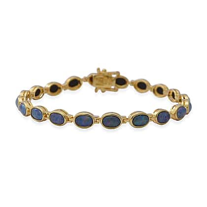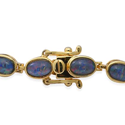 Boulder Opal Tennis Bracelet in Yellow Gold Plated Sterling Silver 7.5 Inch